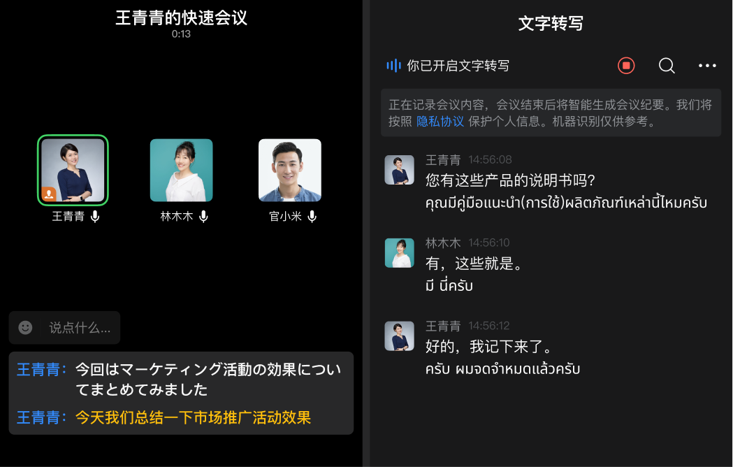 - 会议字幕和文字转写可翻译为17种语言,帮助参会者理解和记录会议内容。