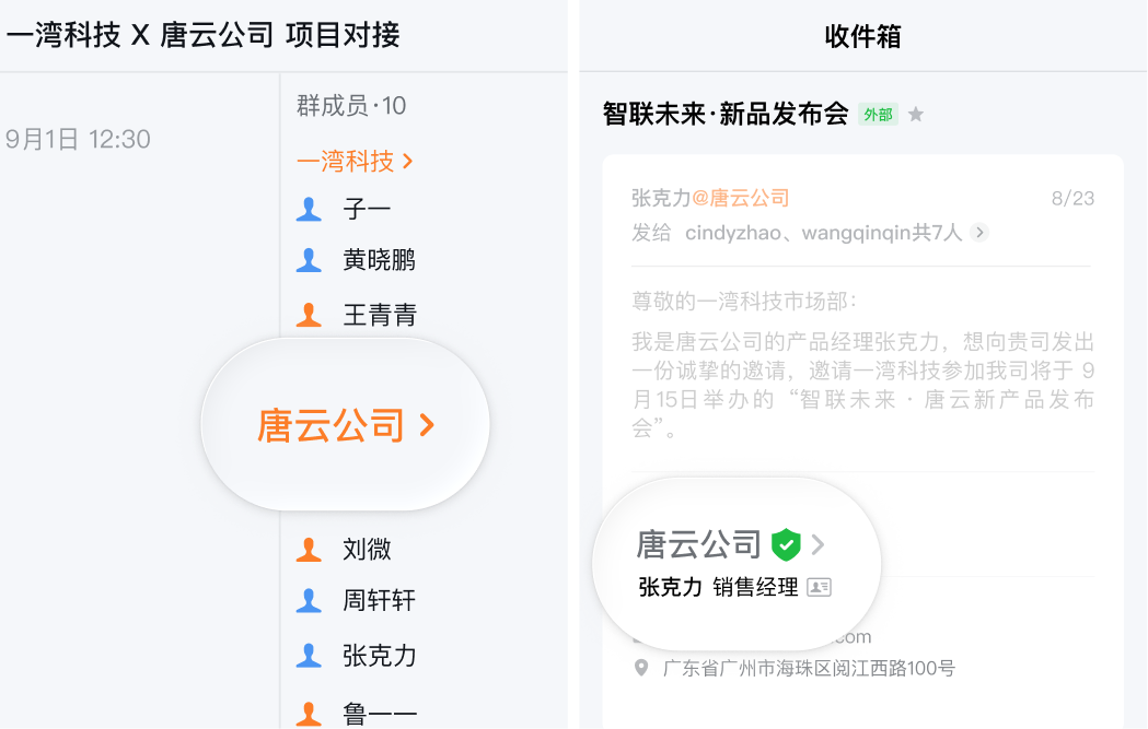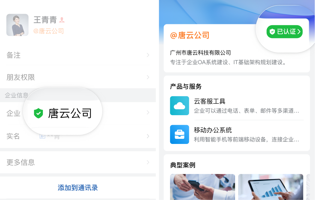 - 可在与客户的单聊、客户群、邮件、文档、会议等多场景展示,更正式地对外介绍企业。
