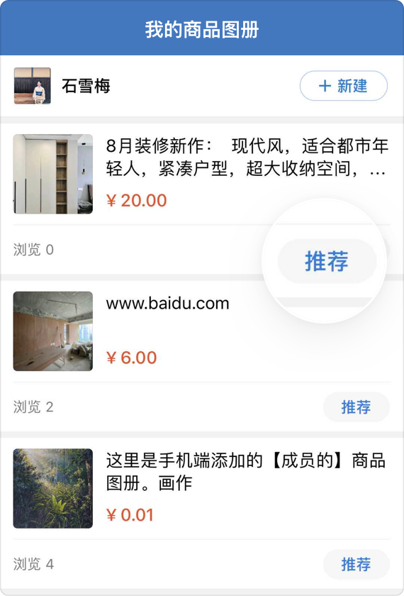 2. 企业可以统一创建商品素材给成员分发使用;
